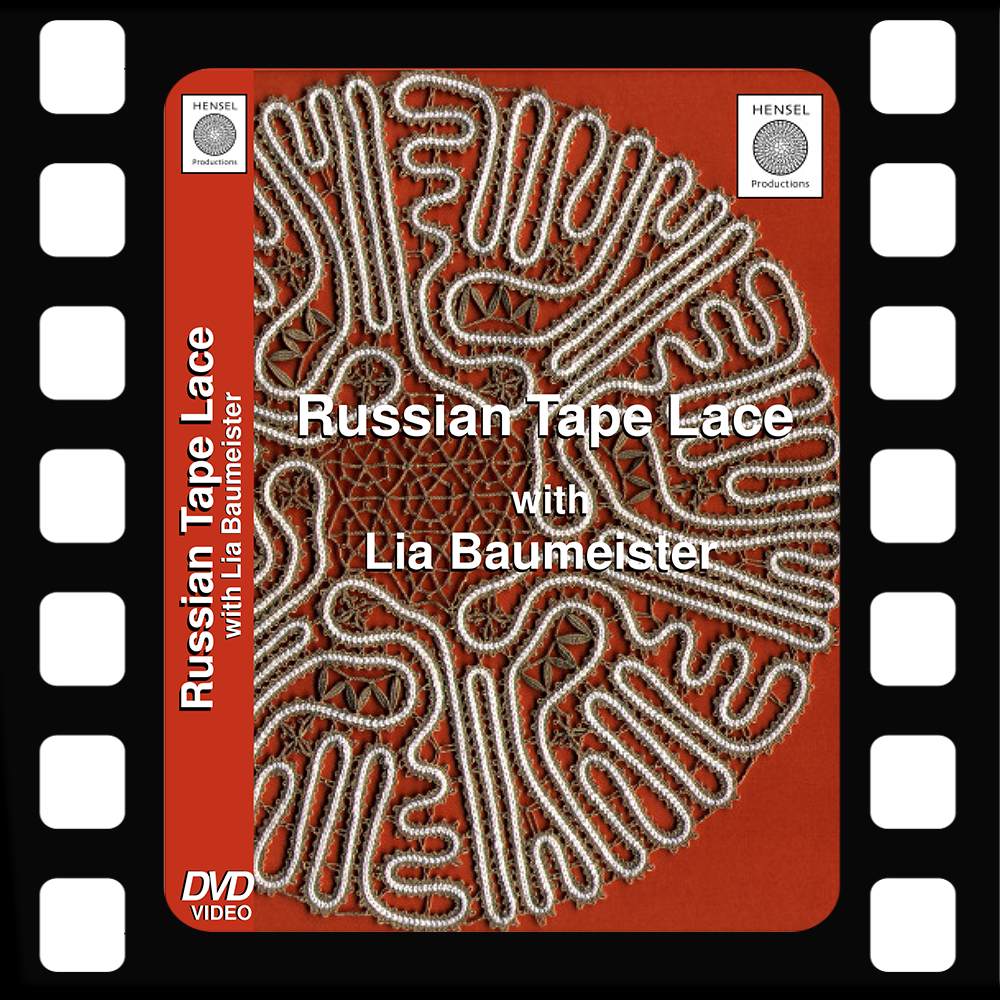In this video, Lia shows how to make a Russian Tape Lace butterfly as it is made in Vologda. She gives instructions for the starting of the lace, a stem stitch, a chain stitch, a false plait, turning a corner, a variety of fillings and the finishing of the lace. An additional pattern for a doily is included for further practice.
